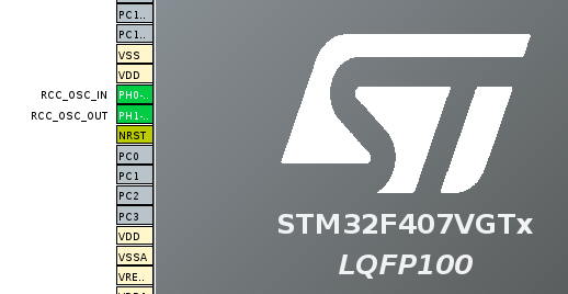 You’ll notice that CubeIDE highlights the RCC_OSC_IN and RCC_OSC_OUT pins in green—these are the oscillator input pins on our microcontroller.