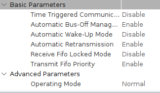 Transmit FIFO Priority – the CAN controller has a transmit buffer (Transmit FIFO) for outgoing messages, usually 3–4 slots (Mailbox 0, 1, 2). The CPU places a frame in a free mailbox, and the controller sends it on the bus. If this setting is disabled, the CAN bus transmits frames based on priority (ID), and a low-priority frame might be stuck in a mailbox if higher-priority frames keep arriving.