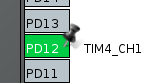 Define PD12 as the output for TIM4_CH1.