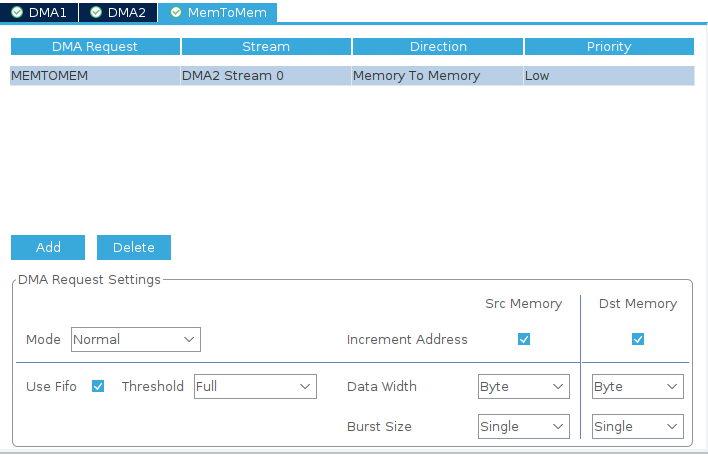 Set Stream to DMA1 Stream 0 and Direction to Memory to Peripheral.Here’s what happens next.