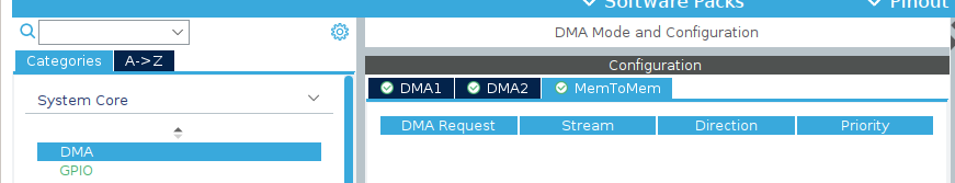 Open the System Core tab -> DMA -> MemToMem.