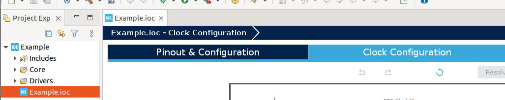 Open CubeIDE, navigate to your project, and open the Project.ioc file. Then, go to the Clock Configuration tab.