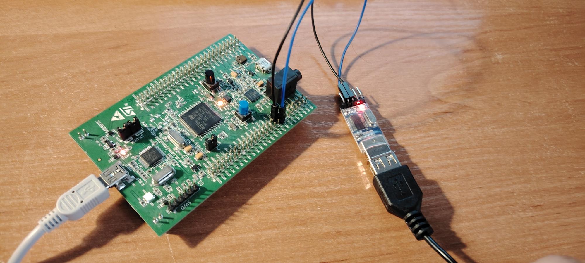 We connected the PL2303HX module to the microcontroller via the UART interface and linked it to a computer through USB. Using a simple STM32 program, we sent string messages and numbers, which were successfully displayed in the terminal. In the other direction, we sent a command through the terminal, and the microcontroller processed it by turning on the LED. This way, we verified two-way data exchange and peripheral control via UART.