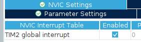By setting the clock source to Internal Clock, we are defining the frequency of the APB1 bus for our timer. Next, we enable interrupts.