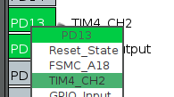 Assign pin PD13 to the corresponding channel of our timer.