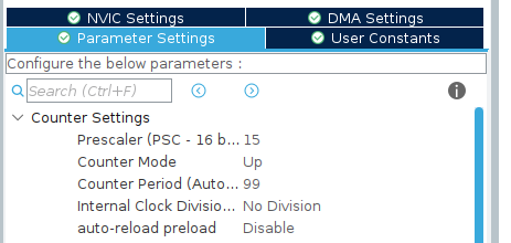 Counter Period (ARR) 99 – defines the maximum possible value up to which the timer will count (remember to add +1).