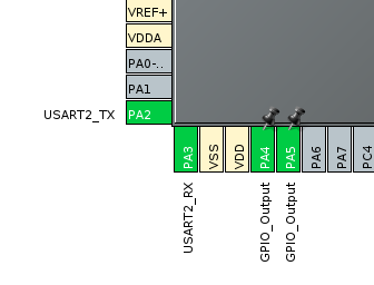 Next, we configure pins PA4 and PA5 as outputs. The setup will look like this: