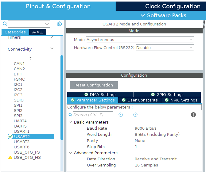 Since we’re using CubeIDE, we’ll configure the settings there. We need to initialize the UART with the following parameters: