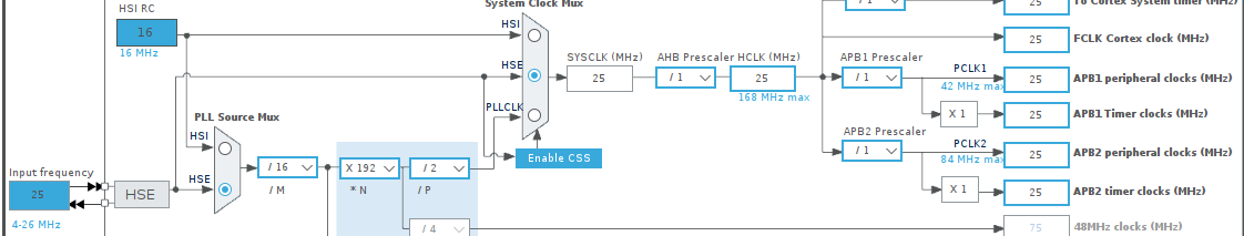 Adjust the clock settings to achieve a frequency of 25 MHz for SPI1.