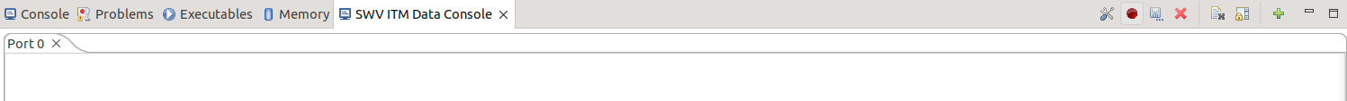 Add the SWV ITM Data Console: on the top panel, click Window → Show View → SWV → SWV ITM Data Console.